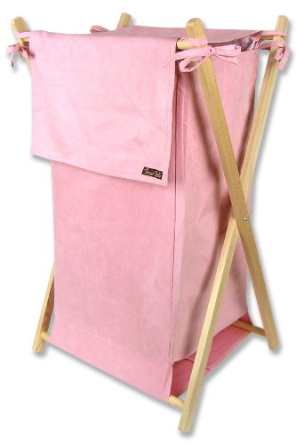 21540 Features: -Hamper Set.-Pine wood frame.-Pink Ultra Suede body, flap, and ties - 100pct polyester.-Pink Ultra Suede collapsible hamper.-Removable mesh liner.-Flap over the top to cover dirty laundry.-Sturdy wood frame.-Velcro fasteners.-Ties: 12''. Dimensions: -Weight: 4.5 lbs.