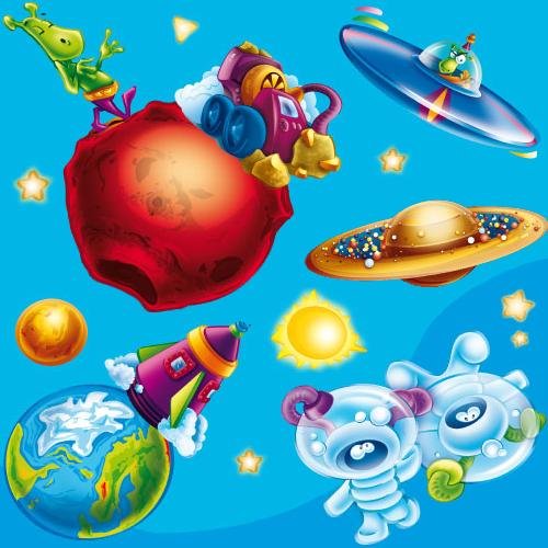 Kit 'Outer Space' contains 37 large wall stickers. With this set every young man dreaming of faraway travels will be able to create a planetarium in their own bedroom. The matt finish of the wall stickers prevents light's reflection and therefore the stickers appear as if painted. The stickers are unique, safe for children and made from the highest quality materials completely in the European Union. The 37 stickers are: Sun (6.3 x 5.9 inches), Venus (17.7 x 16.5 inches), Earth (13.8 x 12.2 inches), Moon (7.1 x 6.3 inches), Mars (18.1 x 15.8 inches), Jupiter (5.5 x 5.1 inches), Saturn (19.7 x 6.7 inches), Rocket (10.6 x 12.2 inches), Flying sources (17.7 x 7.9 inches and 16.5 x 9.9 inches), Astronauts (19.3 x 14.6 inches), Martian (7.1 x 12.2 inches), Space probe (14.2 x 9.9 inches), Stars (max. 2.8 x 2.8 inches). Thanks to their lively colors and shapes the stickers do not only decorate the room but also stimulate the child's imagination during early developmental stages. The diversity, colors and size of the wall stickers captivate your baby's imagination. The nursery will be decorated in just few minutes. You can reposition the stickers in many ways so as to obtain the best effect. The stickers are designed to be stuck onto smooth surfaces painted with emulsion paint. They can also be stuck on furnitures, cement, glass, wood etc. The wall surface should be clean, dry and free from grease or dust. You can use a slightly damp sponge to wipe the stickers. We are convinced you will be delighted with our products. SEE ALSO OTHER KITS: Ocean, Africa, Meadow, Elves, Drive, Sport, Picnic, Island. You can also order a wallpaper for the whole wall. If interested please contact us: mail@funny-colors.com; phone: 00496101-519671.