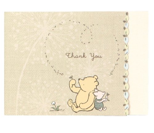 A hand-written thank you never goes out of style! Box of 8 Thank You Note Cards are tastefully decorated with Classic Pooh and piglet. Includes decorated envelopes. Based on the Winnie the Pooh works by A.A. Milne and E.H. Shepard and brought to you by C.R. Gibson, the people who invented the baby book 140 years ago and continues to bring you the very best in memory preservation.Box of 8 Thank You cardsDecorated envelopes includedClassic Pooh designA written card is always the right way to thank youCheck out the entire line of Classic Pooh baby items brought to you by Disney and C.R. Gibson